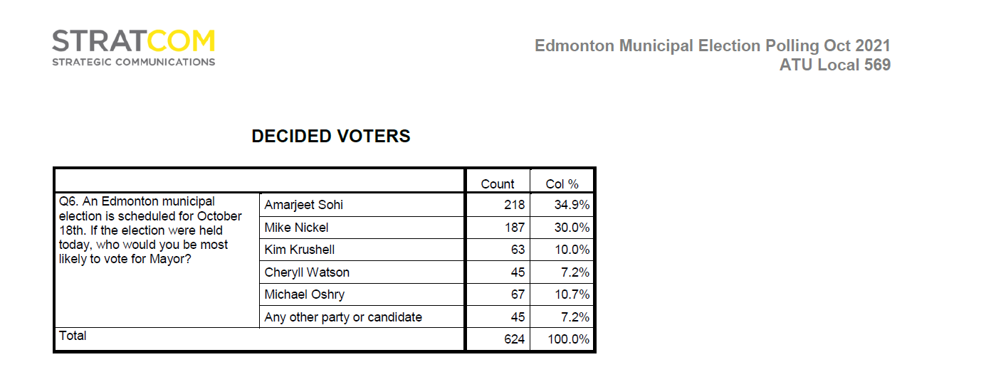 “Today’s Edmonton Journal post of the Leger poll showed a solid lead for Amarjeet Sohi for Mayor, good news for ATU, as we have endorsed him and support him.