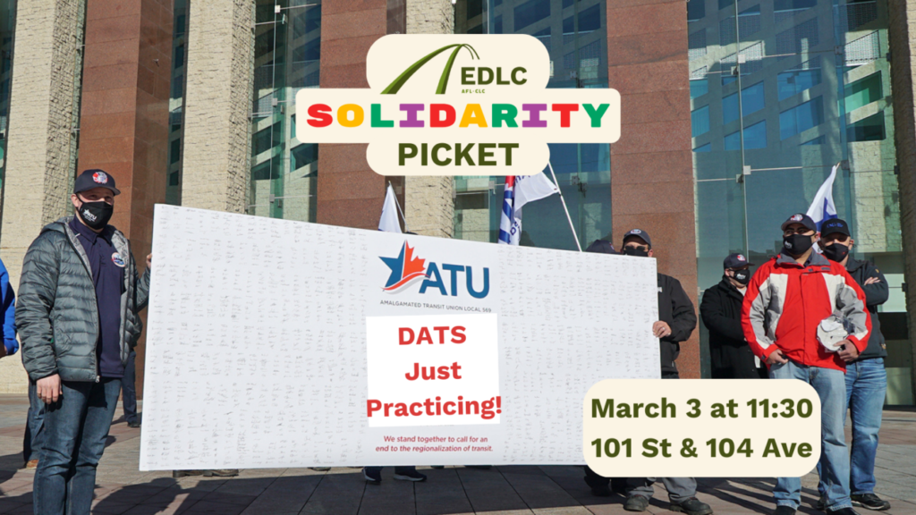 News What’s Up at DATS? 2023-04-04 Read More Coalition of Edmonton Civic Unions on Fallen EPS Officers 2023-03-16 Read More ATU 569 Supports Edmonton Police 2023-03-16 Read More Rally in support of DATS Members! 2023-03-01 Read More Western Standard Propaganda 2023-01-11 Read More Walters’ Disappointment Unfounded 2023-01-09 Read More ATU 569 – City of Edmonton Budget Update 2022-12-29 Read More Holiday Message From the International 2022-12-24 Read More Add Your Voice! 2022-12-06 Read More Alberta’s greatest resource is…. 2022-11-15 Read More ATU Local 1587 Strikes GO Transit! 2022-11-10 Read More ATU CANADA Stands in Solidarity with CUPE/OSBCU in Defending Workers’ Rights 2022-11-01 Read More DATS Operators Launch Campaign to End Discrimination 2022-10-24 Read More ATU Canada Submits Paper on Permanent Public Transit Funding in Canada 2022-10-18 Read More Regional Transit? Not Such a Good Deal 2022-09-01 Read More « Newer 1 2 3 4 5 6 7 8 9 … 17 18 19 20 Older » Share this:Share Click to share on Facebook (Opens in new window) Facebook