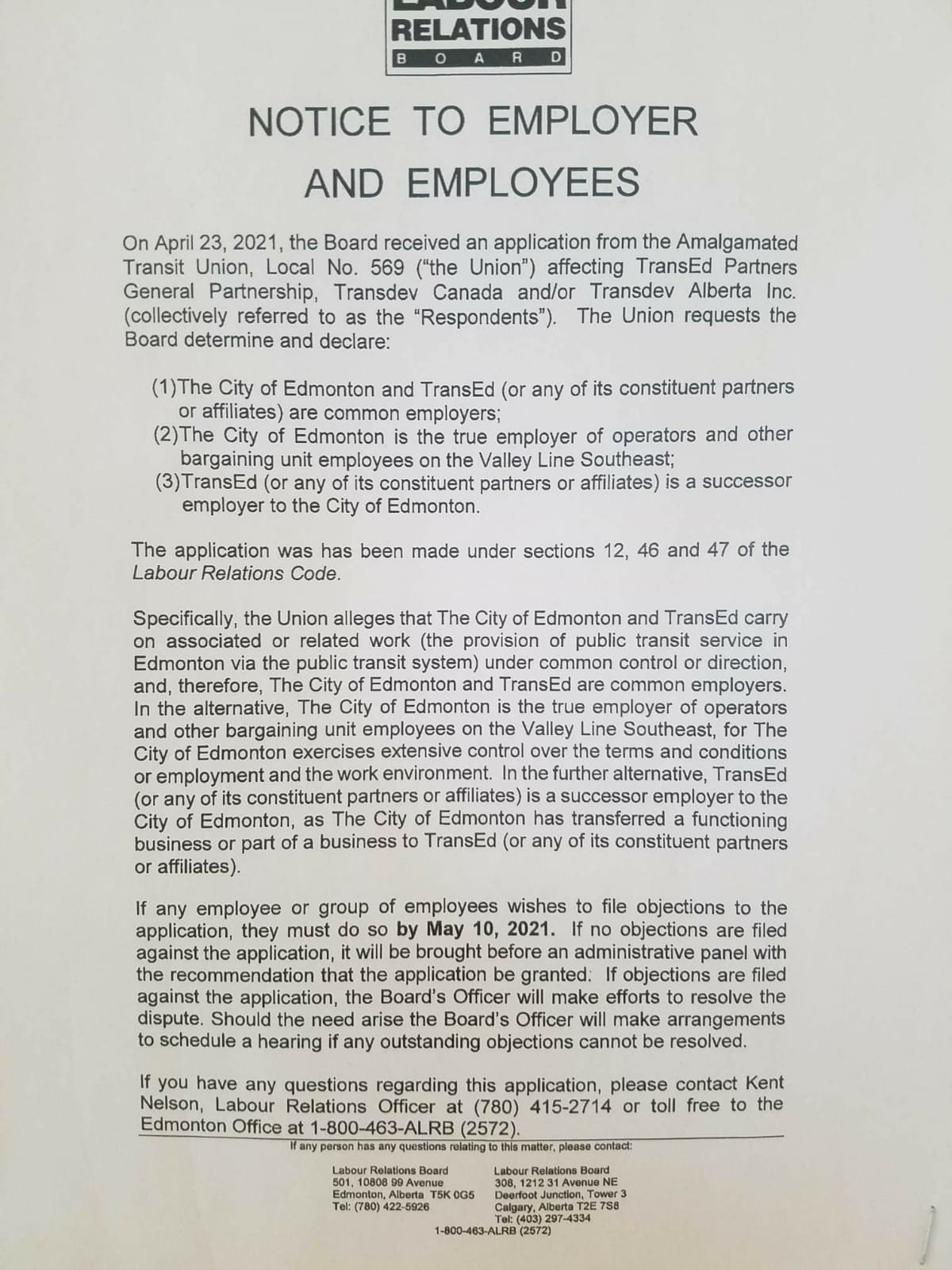 Union Applies to Labour BoardBy Daniel / 2021-04-29 ATU 569 has made an application to the Alberta Labour Board.